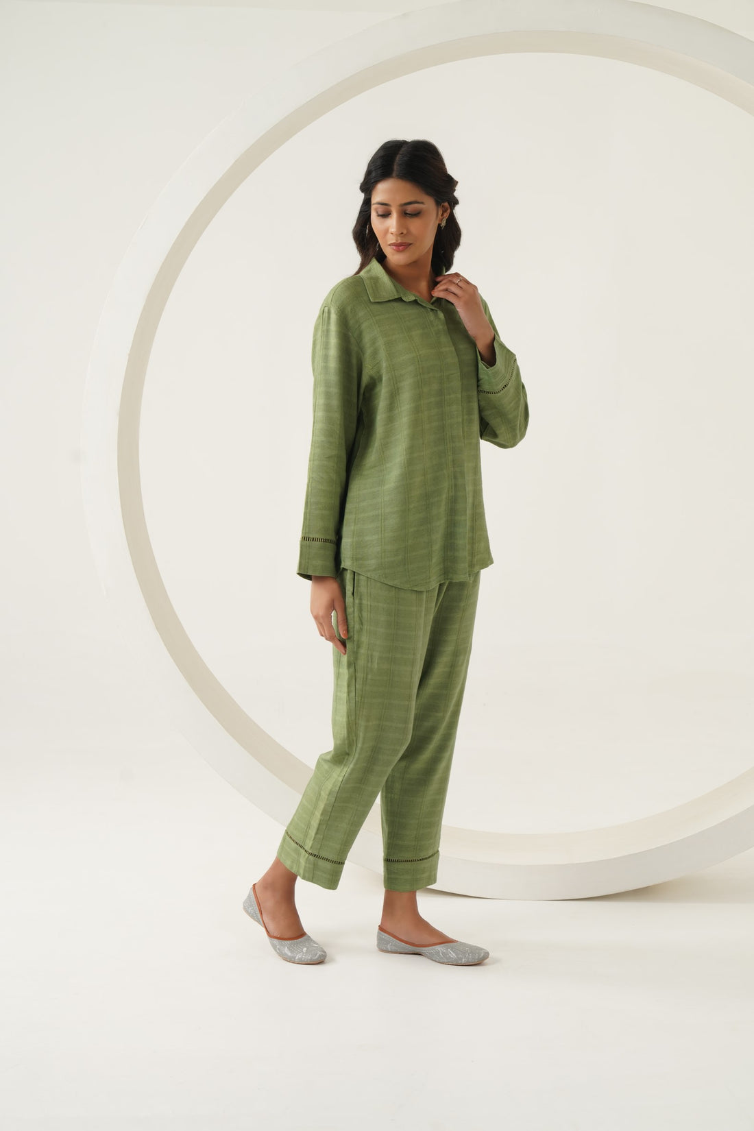 Add effortless charm to your wardrobe with this beautiful green co-ord set crafted from breathable...